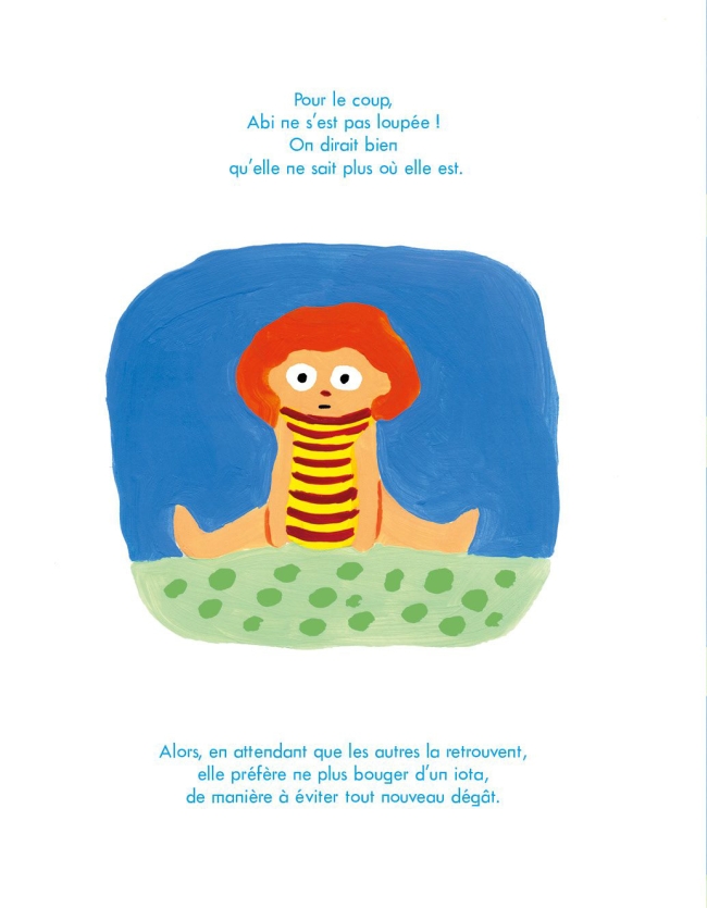 Abigaël en a assez. Chaque fois qu’elle essaie de faire quelque chose, ça finit en catastrophe. Alors cette fois, c’est décidé : elle ne fera plus rien ! Comme ça, impossible de se louper. Malheureusement, la voilà obligée de partir en classe verte. Lors d’un jeu collectif, elle est tellement stressée à l’idée d’échouer qu’elle finit par tout faire capoter. Furieuse, elle s’enfuit en courant… et se perd dans la forêt. Elle n’a pas le choix, elle va devoir se débrouiller. Va-t-elle réussir à se faire un abri pour la nuit ? À trouver un petit déjeuner ? Et à retrouver ses camarades ?