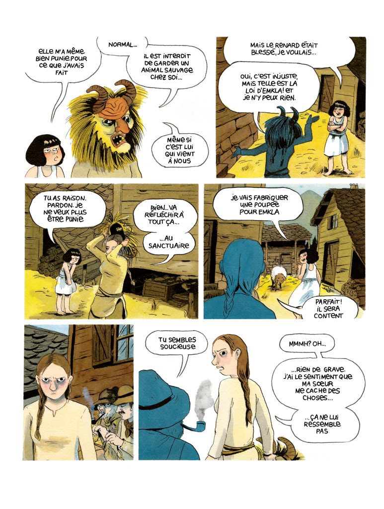Emkla est un conte amoral et sombre, un récit d’aventure haletant qui explore les relations entre humains et nature, et questionne les traditions et idéologies qui nous enferment et nous soumettent plus qu’elles nous éclairent et nous libèrent.