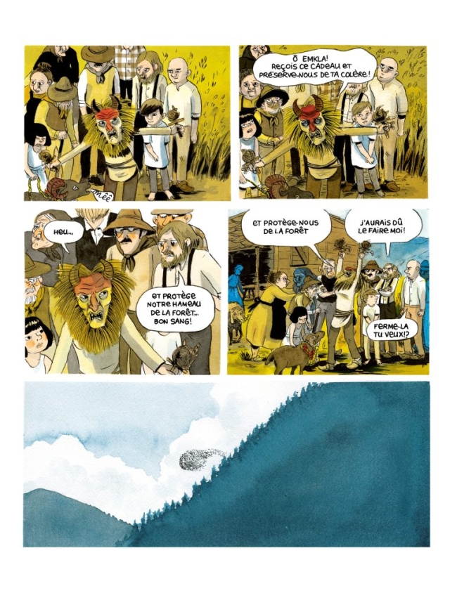 On connaît le talent versatile de Peggy Adam, qui, de livre en livre, aime à jongler avec les thèmes et les approches graphiques; dans Emkla, comme mue par une envie de se réinventer, elle livre sans doute ses plus belles pages, tout en aquarelle, pour mieux nous décrire la cruelle beauté de la nature, et l’éphémère folie de l’être humain.