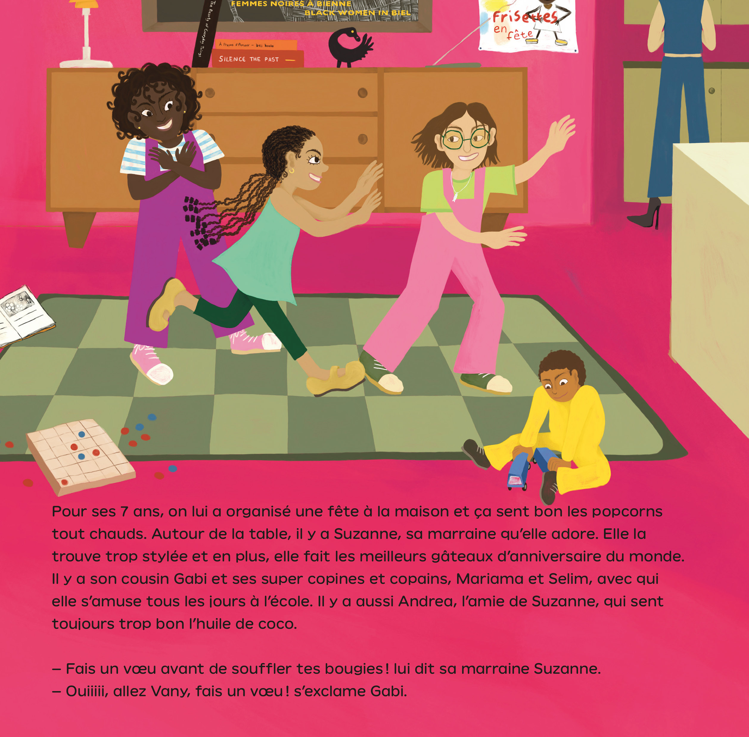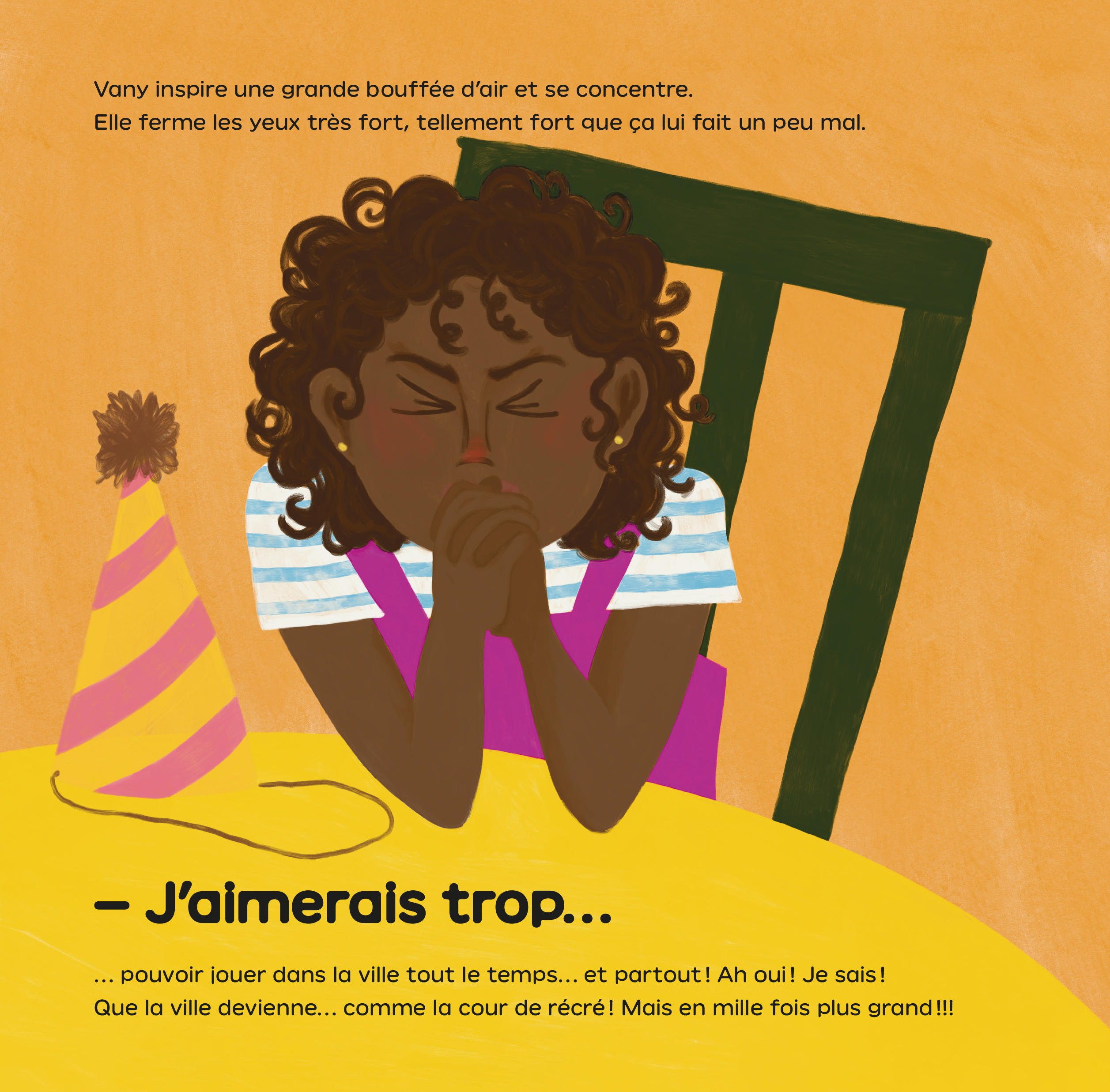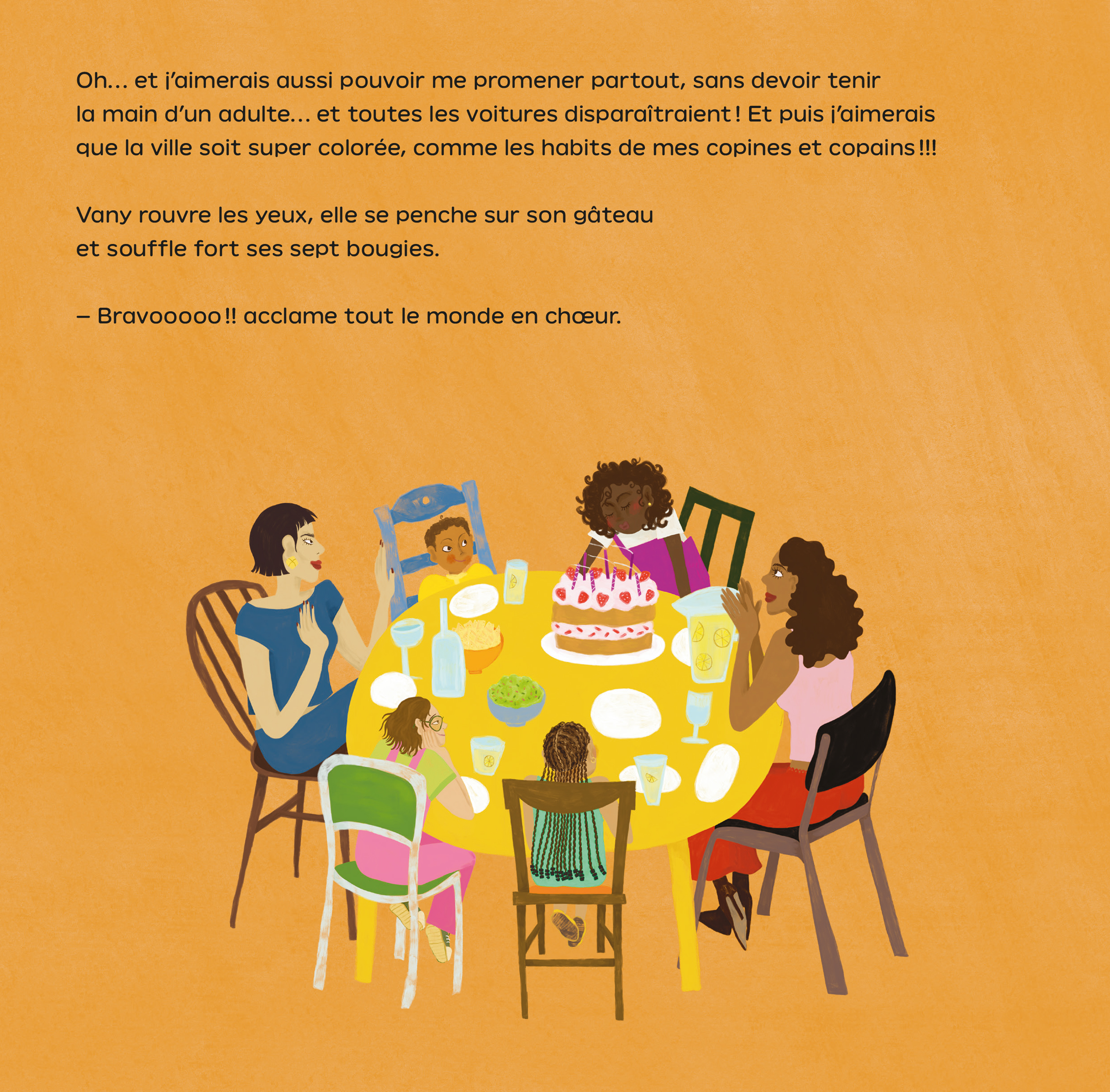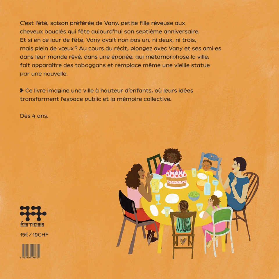 C'est l'été, saison préférée de Vany, petite fille rêveuse aux cheveux bouclés qui fête aujourd'hui son septième anniversaire. Et si, en ce jour de fête, Vany avait non pas un, ni deux, ni trois, mais plein de vœux ? Au cours du récit, plongez avec Vany et ses ami-es dans leur monde rêvé, dans une épopée qui métamorphose la ville, fait apparaître des toboggans et remplace même une vieille statue par une nouvelle.